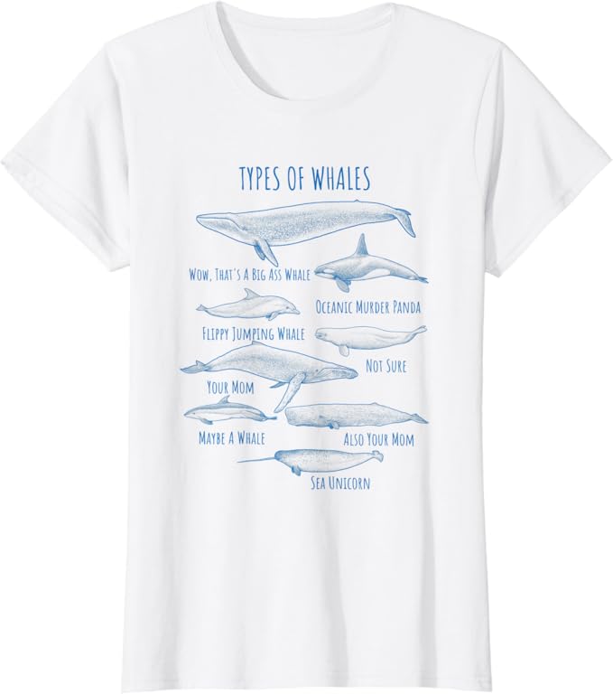 Amazon Com Types Of Whales Name Chart Funny Whale T Shirt Clothing Shoes Jewelry