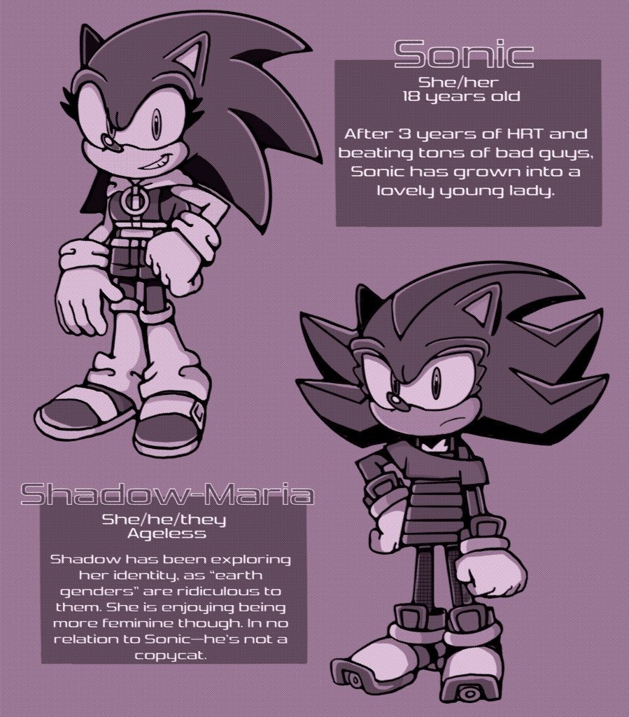 4752 Safe Artist Mykell Cube Shadow The Hedgehog Sonic The Hedgehog Hedgehog Au Girl Mykell Cube Character Name Duo English Text Featured Image Frown Gender Swap Grin Hand On Hip Looking At Viewer
