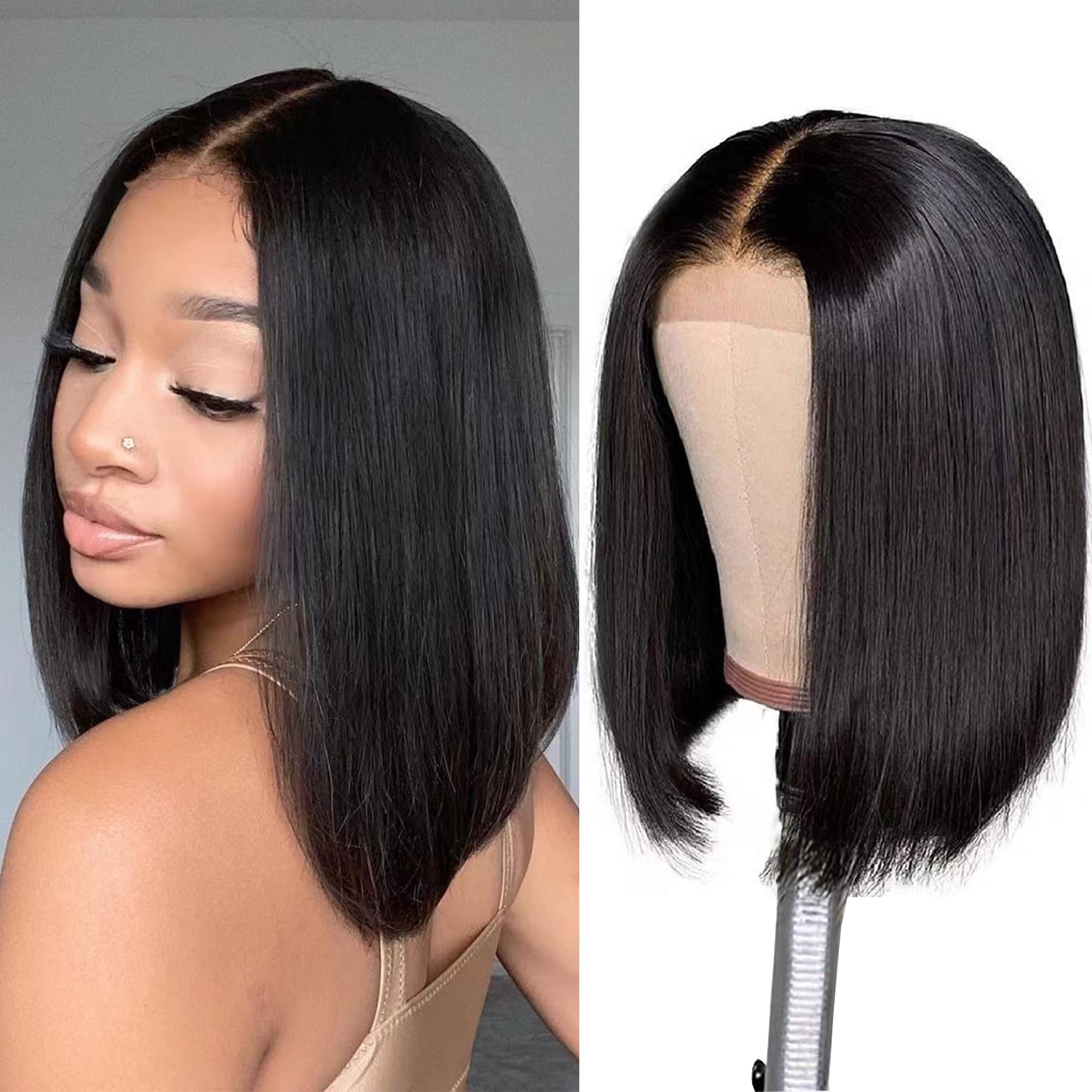 Amazon Com Hlsk Bob Wig Human Hair For Black Women 14 Inch 4x4 Lace Closure Short Bob Wigs 180 Density Brailian Virgin Lace Front Hair With Pre Plucked 10a Free Part Closure Straight
