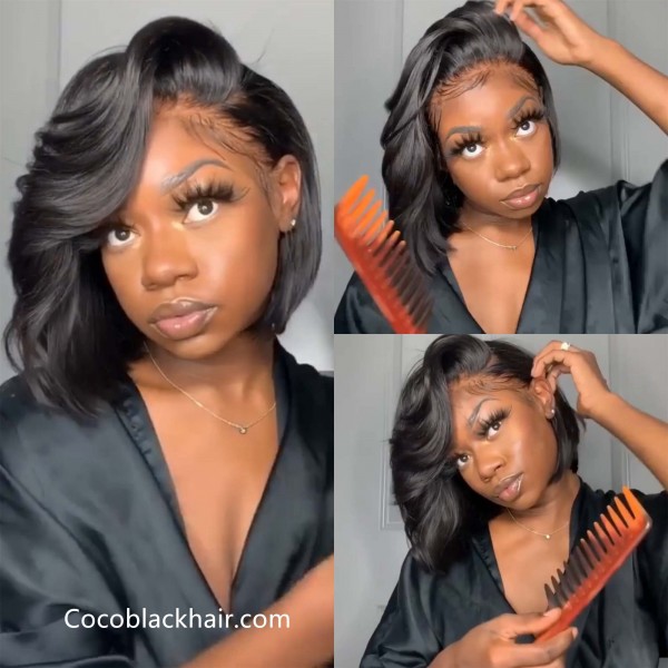 Ashya Pre Plucked Brazilian Virgin Wave Bob 150 Density Glueless Lace Front Wig With Baby Hair Human Hair Wig Bleached Knots