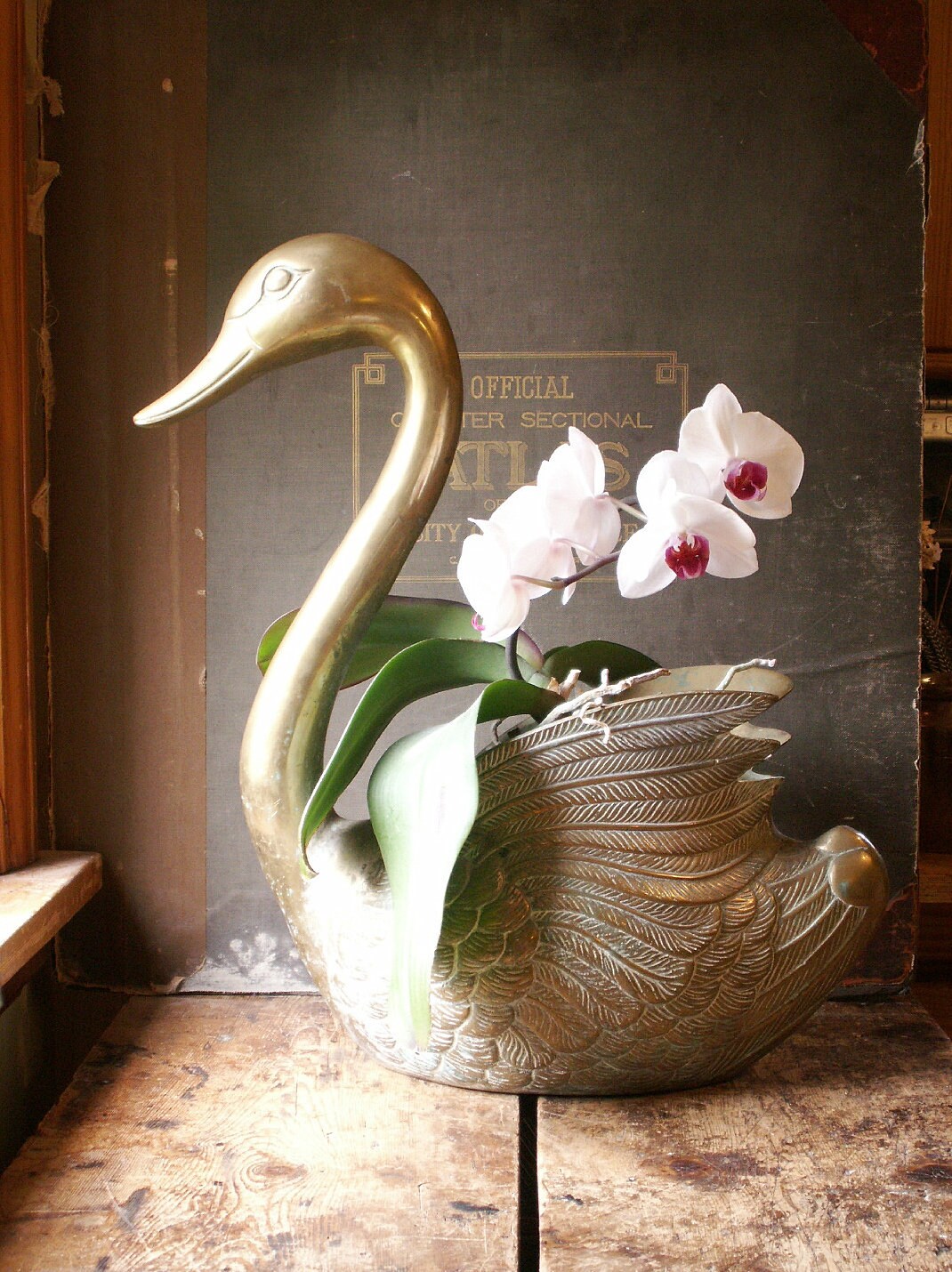 20+ Large Brass Swan Planter