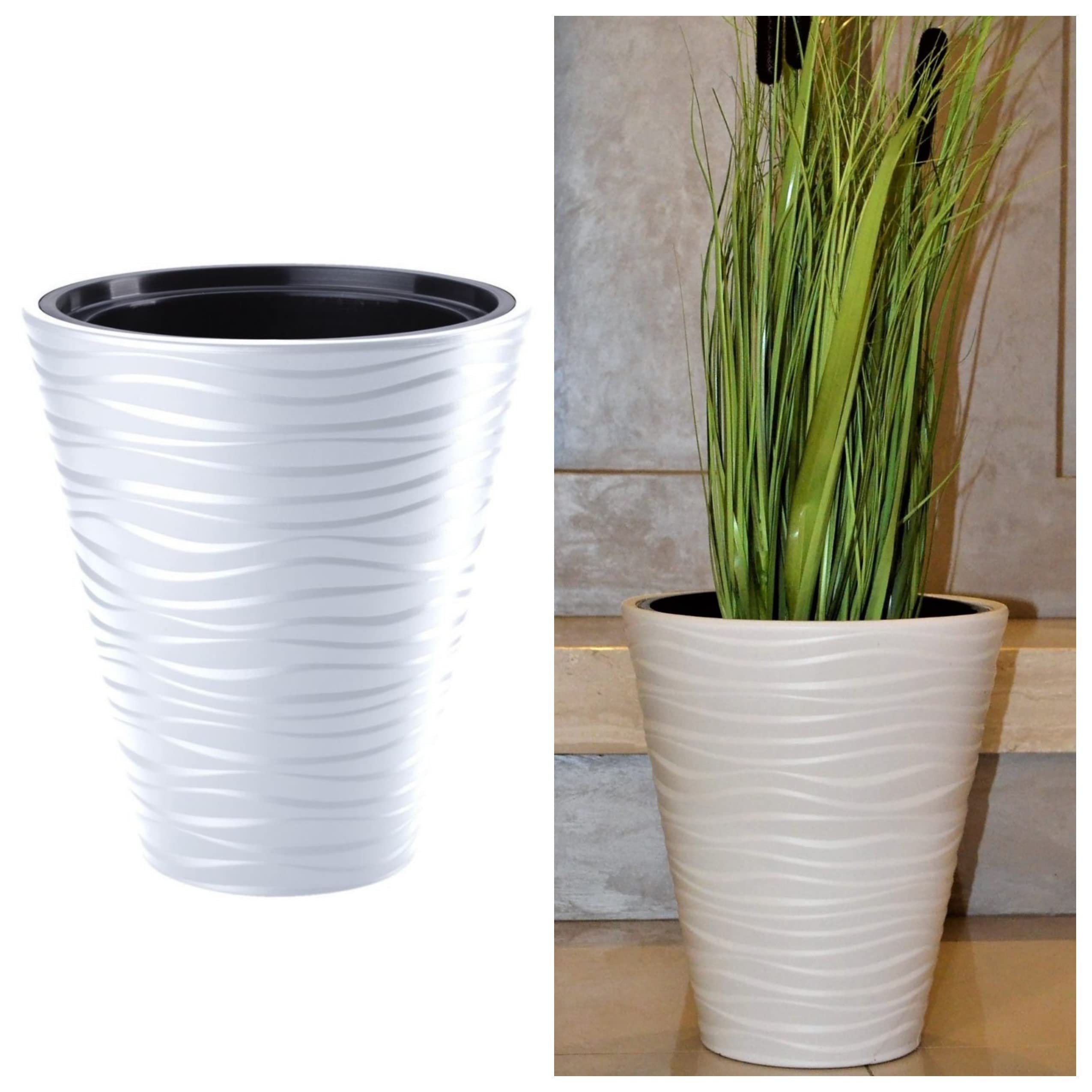 Flower Pot Round With Removable Insert 3d Effect Waves White Size S Amazon De Garden